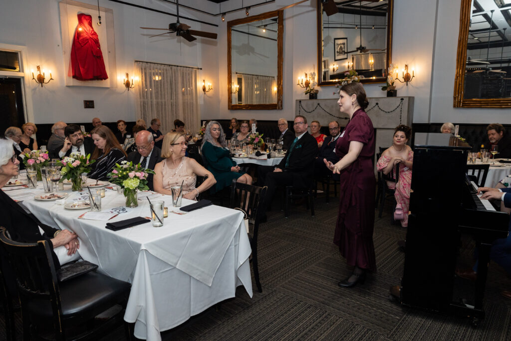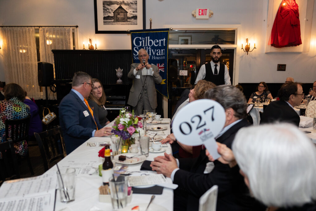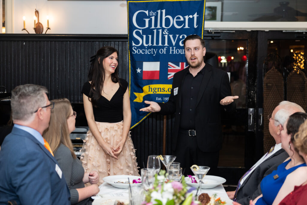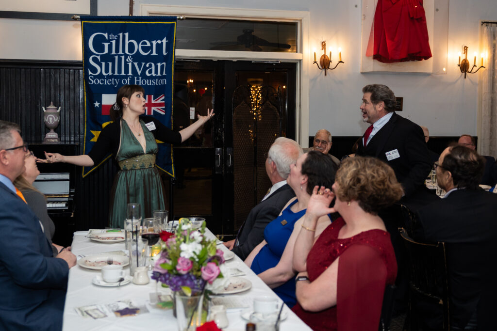 Set in the elegant Baker Institute Grand Hall at Rice University, the evening begins with an open bar and hors d’oeuvres, followed by a three-course dinner. Society artists—drawn from past productions and the upcoming summer show, The Gondoliers—will perform Gilbert & Sullivan favorites, celebrated arias, and beloved musical theater standards, offering a “menu” of songs highlighting the operettas that helped lay the foundation for modern musical theater.